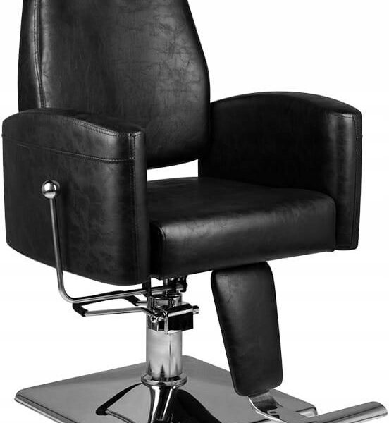Klasyczny fotel fryzjerski – barberski marki HAIR SYSTEM. Elagancki i bardzo wygodny. Solidna, chromowana podstawa gwarantuje , utrzymanie stabilności siedziska. Obicie wykonane z wysokiej jakości czarnej ekoskóry. Fotel posiada regulację oparcia wraz z zagówkiem oraz wysokości góra-dół.Fotel dostarczany jest w elementach do samodzieknego montażu.
