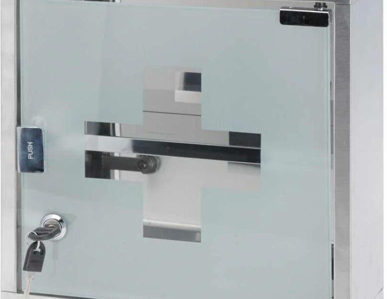 Szafka ścienna w formie apteczki w kolorze srebrnym. Niezbędna w każdym domowym wnętrzu. Apteczka idealnie pasuje do łazienki, kuchni, biura. Całość wykonana ze stali nierdzewnej, szyba szklana matowa. Do apteczki dołączone są 2 kluczyki. Wewnątrz półka dzieląca apteczkę na dwa poziomy. W komplecie wkręty i kołki rozporowe do montażu na ścianie.Grubość szyby : 3 mm