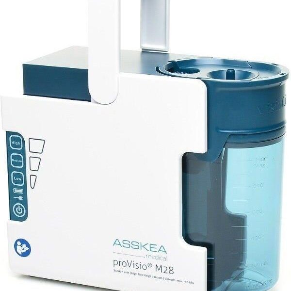 Unikalna budowaSsak medyczny proVisio M28 to najnowszy ssak firmy Asskea, powstały w wyniku wielu lat badań i rozwoju ssaków medycznych elektrycznych. Urządzenie wykonane jest z zaawansowanych tworzyw sztucznych, a jego konstrukcja jest modułowa. Ogromnym postępem w budowie ssaka jest integracja zbiornika z obudową, co eliminuje konieczność zewnętrznego prowadzenia węża.BezpieczeństwoPrzenośny ssak medyczny proVisio M28 jest bezpieczny w obsłudze – został zaprojektowany w taki sposób, aby uniemożliwić nadmierne ssanie i nieprawidłowe działanie, co mogłaby spowodować uszkodzenia i awarię urządzenia.Czynności takie jak wymiana dodatkowego filtra zapewniającego podwójne bezpieczeństwo, mogą bez problemu zostać wykonane przez użytkownika. Ssak charakteryzuje cicha praca i niewielkie wibracje podczas użytkowania.Oszczędność czasuPrezentowany ssak elektryczny to ekonomiczne rozwiązanie ze względu na konieczność dezynfekcji i konserwacji urządzenia. Pro Visio M28 został zbudowany w taki sposób, że jego jednostka napędowa jest oddzielona od generatora podciśnienia, dlatego nie jest ona zanieczyszczana podczas korzystania z urządzenia. Podczas sterylizacji, dezynfekcji muszą zostać poddane tylko zewnętrzne elementy ssaka, a dzięki unikalnej budowie generatora podciśnienia nie jest konieczna jego konserwacja.Niewielkie wymiarySsak medyczny domowy proVisio M28 to nowa generacja urządzeń ssących. Urządzenie można łatwo obsługiwać, nawet przy użyciu tylko jednej ręki. Dzięki niewielkim wymiarom oraz chowanemu uchwytowi jednostka jest mobilna, z łatwością można ją przenosić, a podczas przechowywania zabiera stosunkowo mało miejsca.ProVisio M28 to rewolucyjne urządzenie, które wyznacza nowy punkt odniesienia w dziedzinie odsysania wydzieliny, dając pacjentom nowe poczucie bezpieczeństwa.Zalety urządzenia:Kompaktowa i lekka konstrukcja.Pojemnik wielokrotnego użytku.Cicha praca.Optymalne zarządzanie higieną.Łatwa i bezpieczna obsługa.Zasilanie akumulatorowe i sieciowe (akumulator litowo-jonowy).Regulacja siły ssania w trzech poziomach: low, medium i high.