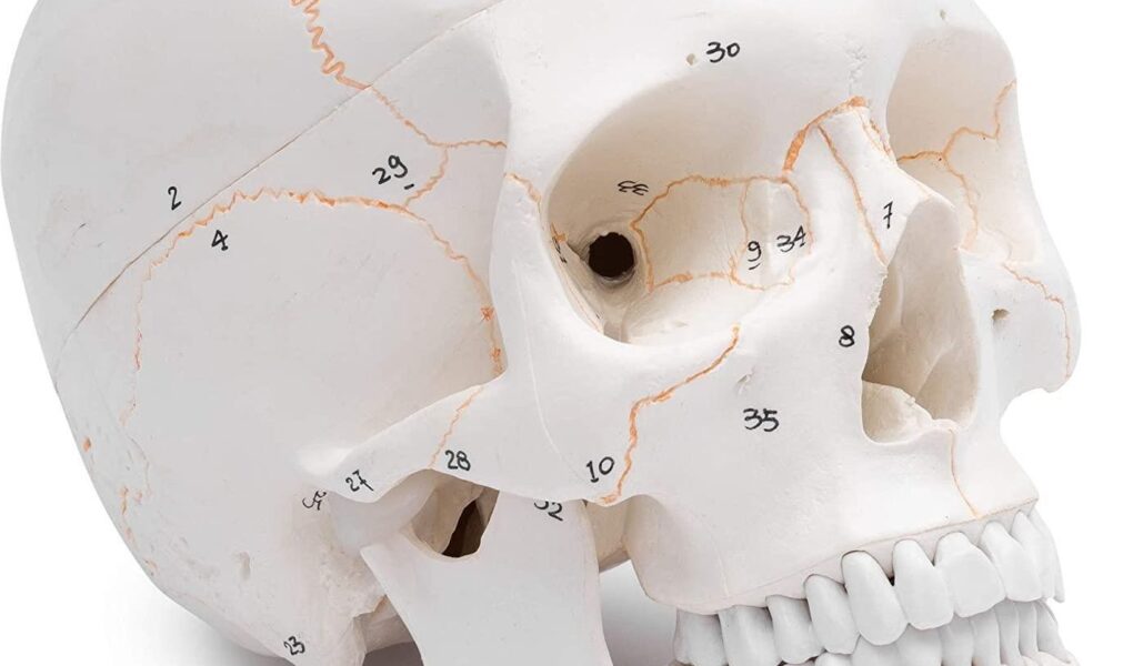 Najważniejszym wyróżnikiem jest sposób wykonania: model anatomiczny czaszki człowieka został podzielony na 3 części i dodatkowo wyposażony w specjalnie ponumerowane obszary kości. Dzięki temu prowadzący może omawiać konkretne fragmenty, a uczący się szybciej kojarzyć nazwy z widoczną strukturą.