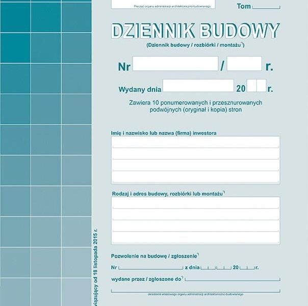 | Nazwa | Druk Dziennik Budowy A4 |