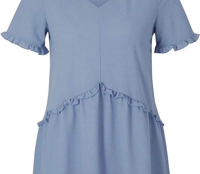 Heine Koszulka w kolorze błękitnym łączy w sobie cechy, które zwykle najbardziej cenimy na co dzień: czytelny fason, wygodny krój i dekoracyjne, ale nieprzytłaczające wykończenia. Dekolt w kształcie V oraz falbanki dodają całości kobiecego charakteru, jednocześnie zachowując prostotę formy.