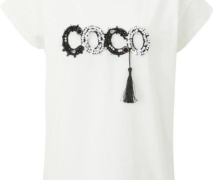 Zwróć uwagę na aplikacje – to detal, który dodaje koszulce „tego czegoś”, ale nie zmienia jej w zbyt ozdobną rzecz. Dzięki temu łatwiej utrzymać spójny styl, a kremowy odcień pozostaje neutralnym tłem dla reszty dodatków.