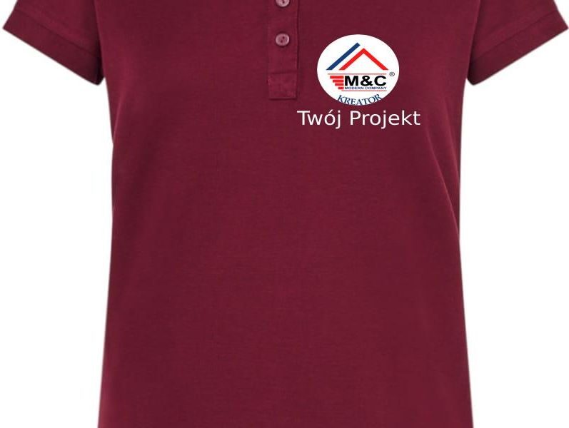 M&C Koszulka Polo Damska Bordowa – Nadruk Na Piersi