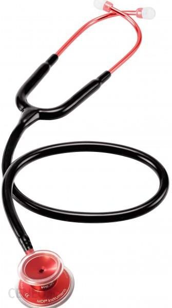 Estetyczny setoskop MDF 747XP Deluxe Dual Head to doskonała jakość dźwięku za przystępną cenę.Niezwykle lekki.Bardzo lekki stetoskop dedykowany dla wszystkich pracowników medycznych.Lira umieszczona w świetle przewodu.Regulowana lira została wykonana z chromowanego mosiądzu. Umieszczona w świetle przewodu wygląda bardzo estetycznie.Dwustronna głowica.Wyjątkowo lekka dwustronna głowica wykonana z anodowanego aluminium i chromowanego mosiądzu, zapewnia dobre parametry akustyczne i tradycyjne metody osłuchiwania za pośrednictwem membrany i lejka. *Innowacyjne technologie.Membrana jest wykonana z ultra-czułego włókna wzmacniającego dźwięk. Idealna szczelność membrany zapewniona jest dzięki pierścieniowi podtrzymującemu (Diaphragm Retaining Ring), który tworzy optymalne wzmocnienie i wysoką częstotliwość transmisji tonów serca i płuc o częstotliwościach od 100 to 1000 Hz. Bardzo duży lejek z nieziębiącym pierścieniem zapewnia doskonałe wzmocnienie akustyczne i izolację dla dźwięków o niskiej częstotliwości. Membrana jest wypukła z wytrzymałym pierścieniem podtrzymującym, wykonanym z nieziębiącego tworzywa PVC dla lepszego komfortu pacjenta.*Głowica stetoskopu w nowych modelach jest bezbarwna, bez kolorowych wstawek.SKU: TOW009253Kod EAN: 000Kategoria SAP: Stetoskopy internistyczneKolor (MDF): Red – Black (MDF11)Marka: MDFRodzaj stetoskopu: Classic / InternistycznyTechnologia głowicy: dwustronnaDuża membrana: średnica 4,5 cm Mała membrana / lejek: średnica 3,3cmPrzewód (lira): jednokanałowyOliwki: miękkieDługość całkowita: 78 cmWaga urządzenia: 121gStawka podatku: VAT 8%