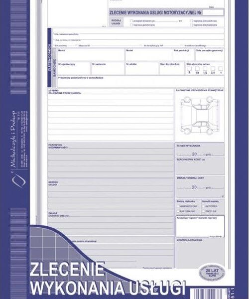| Nazwa | Michalczyk I Prokop Zlecenie Wykonania Usługi Motoryzacyjnej A4 80 Kartek |