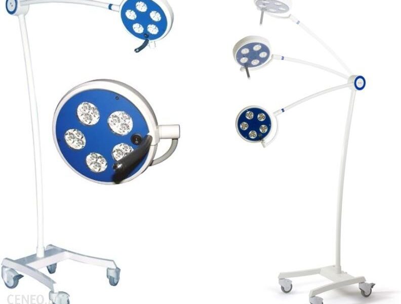 L21-25RLED bezcieniowa lampa zabiegowa 50W z na statywie mobilnym Mobilna lampa zabiegowo-diagnostyczna do oświetlania pola zabiegowego i diagnostyki medycznej. Bezcieniowa – trójsferycznie zamontowane diody LED w głowicy świetlnej powodują efekt bezcieniowości w obrębie plamki świetlnej. Źródłem światła w lampie L21-25RLED jest 5 modułów świetlnych zawierających po 3 diody LED zgrupowanych w jednej głowicy świetlnej osadzonej na ramieniu prostowodowym zakończonym przegubem umożliwiającym swobodne kierowanie światła na pole zabiegowe. W czaszy głowicy świetlnej umieszczony jest włącznik/wyłącznik lampy. Lampa zabiegowa L21-25RLED osadzona jest na statywie wyposażonym w aluminiową podstawę. Podstawa wraz z aluminiowym masztem i ramieniem pokryte są lakierem proszkowym w kolorze białym (RAL 9002). Z przegubu umieszczonego w maszcie statywu wyprowadzone jest ramię prostowodowe, które umożliwia regulację wysokości położenia głowicy świetlnej. Również czasza z głowicą świetlną wyposażona jest w przegub umożliwiający jej obrót. W czaszy umieszczono uchwyt do sprawnego kierowania oświetlaniem pola zabiegowego. Podstawa statywu posiada 4 antystatyczne koła kierunkowe z tworzywa sztucznego o średnicy 80 mm, z których 2 koła wyposażone są w hamulec postojowy (blokadę jazdy). Lampa L21-25RLED przeznaczona jest do stosowania jako oświetlenie diagnostyczne i zabiegowe w gabinetach lekarskich i zabiegowych, a także w gabinetach weterynaryjnych. Sprawdzi się również w salonach i gabinetach kosmetycznych, a także w salonach tatuażu. Charakterystyka i zalety lampy zabiegowo-diagnostycznej L21-25RLED odpowiednia do oświetlania niewielkich rozmiarów pola zabiegowego oraz do diagnostyki medycznej ramię o długości 78,5 cm pozwala precyzyjnie kierować oświetlenie na pole zabiegowe przegub umożliwiający obrót głowicy świetlnej zakres regulacji wysokości położenia głowicy świetlnej 81,6-118,5 cm od podłogi 5-modułowa, bezcieniowa głowica świetlna o łącznej mocy 50W zapewnia profesjonalne oświetlenie medyczne w dobrych parametrach światła: natężenie światła 87 000 lx z odległości 50 cm od pola zabiegowego natężenie światła 50 000 lux z odległości 100 cm od pola zabiegowego wielkość plamki świetlnej 170 mm z odległości 100 cm barwa światła 5000K biała (chłodna) średni czas żywotności diod LED 50.000 godzin pracy 5 lat gwarancji producenta na głowicę świetlną uchwyt (rączka) do ustawiania czaszy głowicy świetlnej statyw z kółkami nadający lampie mobilności certyfikowany wyrób medyczny darmowa dostawa na terenie Polski Wyrób medyczny zgodnie z wymaganiami zasadniczymi dla wyrobów medycznych w rozumieniu dyrektywy MDD 93/42/EEC oraz krajowej ustawy o wyrobach medycznych.