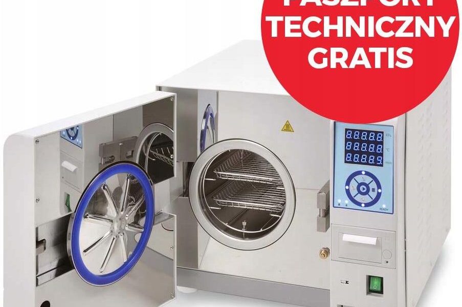 Autoklaw MED12 z wbudowaną drukarką + paszport techniczny GRATIS Najwyższej klasy autoklaw paro-ciśnieniowy, spełniający rygorystyczne normy sanepidu według standardu europejskiego prEN 13060 klasy B. Jako jedyny z dostępnych klas autoklawów posiada możliwość sterylizacji materiałów o porowatej i kapilarnej budowie (cewki, igły, endoskopy, wzierniki, końcówki stomatologiczne, pilniki, nożyczki). Funkcje jakie posiadają autoklawy klasy B nie są dostępne w innych klasach autoklawów (autoklawy klasy S i N). Autoklawy klasy B posiadają próżnię wstępną. Dzięki temu możliwe jest całkowite usunięcie powietrza ze sterylizowanych przedmiotów. Jak do tej pory jest to najlepsza z istniejących technik, która daje możliwość sterylizacji każdego rodzaju produktu. Autoklaw klasy B idealnie sprawdza się w gabinetach lekarskich, kosmetycznych, stomatologicznych itp. Wszędzie tam, gdzie istnieje znaczna potrzeba bądź sanitarne wymagania sterylizacji materiałów, które zostały wymienione powyżej. Autoklawy klasy B zapewniają komfort i bezpieczeństwo procesów sterylizacyjnych w gabinetach. Dzięki wbudowanej drukarce możliwe jest archiwizowane procesów sterylizacji, wymaganych przez sanepid podczas kontroli.Urządzenie posiada 4 automatyczne programy z temperaturą pracy 121°C lub 134°:narzędzia nieporowate – np. skalpel, nożyczkinarzędzia porowate – np. pilniki, końcówki mikrodermabrazjimateriały bawełniane – np. ręczniczkitworzywa plastikowe i gumowe – np. rękawiczki, szczotkiZastosowanie:gabinety kosmetycznegabinety stomatologicznestudia tatuażugabinety lekarskieszpitale / przychodniegabinety weterynaryjneW skład zestawu wchodzą:urządzenie Klasy B o pojemności 12ldwie metalowe tackiuchwyt do tackipojemnik na wodęwężyk odprowadzający wodędwie rolki papierukabel zasilającyuszczelka zapasowadwa zapasowe bezpiecznikiinstrukcja w j. polskiminstrukcja w j. angielskimDane techniczne:komora ze stali kwasoodpornej (chromoniklowej)elektroniczna blokada drzwiwbudowana drukarka termicznaczas pracy – 20-45 min w zależności od programuwymiary zewnętrzne: szerokość: 48 cm, wysokość: 42 cm, głebokość: 55 cmwymiary wewnętrzne: głębokość 36cm, średnica robocza 21cmpojemność 12lwaga: 50kgzasilanie 220-230 V , 50/60 Hz , 1800 Wposiada certyfikat CE i EC Directive 93/42/EECWymiary produktu55.0 × 48.0 × 42.0 cm