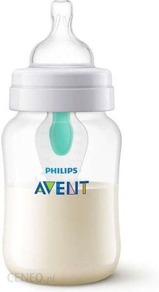 Łatwe użytkowanie i czyszczenie, szybkie i łatwe składanieSzeroka szyjka butelki ułatwia napełnianie i czyszczenie. Produkt składa się z zaledwie kilku części, dzięki czemu montaż jest szybki i prosty.Badania kliniczne wykazały, że butelka Philips Avent ogranicza występowanie kolki i rozdrażnienia*. W jaki sposób? Zaworek w smoczku zapobiega powstawaniu podciśnienia podczas karmienia, umożliwiając nieprzerwane karmienie. Pomaga to ograniczyć kolki, gazy, ulewanie i odbijanie.Smoczek pozostaje wypełniony mlekiem, nawet gdy jest ustawiony poziomo, dzięki czemu dziecko może pić w bardziej naturalnej pionowej pozycji. To pomaga ograniczyć refluks oraz połykanie powietrza, a karmienie staje się wygodniejsze dla Ciebie i Twojego maleństwa.Łatwa obsługaNapełnij butelkę mlekiem, załóż nakładkę antykolkową AirFree™ na krawędź butelki i przykręć smoczek. Przechyl butelkę w dół, aby mleko wypełniło smoczek. W czasie karmienia nakładka AirFree™ powinna znajdować się u góry. Smoczek pozostaje wypełniony mlekiem, nawet gdy jest ustawiony poziomo podczas karmienia w pozycji pionowej.