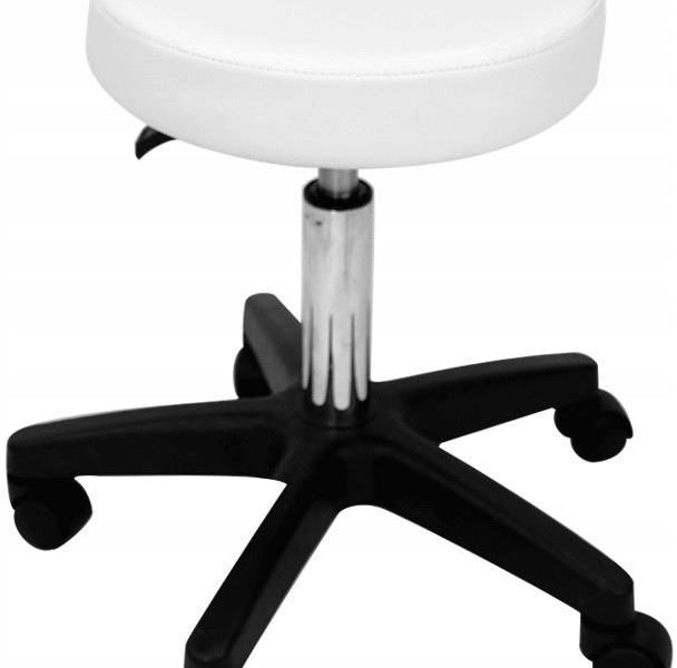 TABORET KOSMETYCZNY BEZ OPARCIA REGULACJA PAPILIOWygodny i elegancki taboret bez oparcia z hydrauliczną regulacją wysokości.Dostępny w białym kolorze, wykonany z ekologicznej skóry, łatwo zmywalny (eko-skórę można czyścić środkami niezawierającymi nafty, alkoholu, amoniaku, stosowanie środków żrących może spowodować przebarwienia i przetarcia).Usytuowany na pięcioramiennej podstawie na kółkach.Parametry techniczne:- siedzisko średnica: 34cm- grubość siedziska: 8,5cm- wysokość min. 54cm, maks 68cm- szerokość podstawy: 50cm
