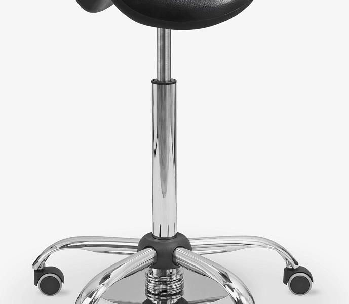 Podnóżek, regulacja wysokości i siodło z poliuretanu – wygoda pracy bez przerw
