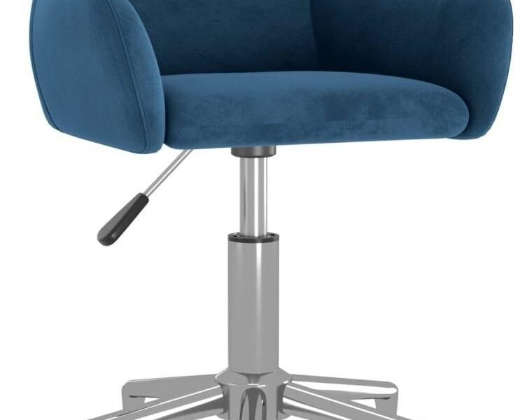 Charakteryzujące się stylowym i nowoczesnym designem, obrotowe krzesło biurowe będzie praktycznym dodatkiem do Twojego miejsca pracy.Rama z chromowanej stali i sklejki zapewnia wysoką wytrzymałość i stabilność mebla. Obite aksamitem krzesło biurowe z pewnością oferuje optymalny komfort siedzenia. Dzięki podnośnikowi gazowemu można regulować wysokość siedziska. Dodatkowo mebel ten obraca się płynnie o 360 stopni, ofiarując dużą swobodę.Kolor: niebieskiMateriał: aksamit (100% poliester), chromowana stal, sklejkaMateriał wypełnienia: gąbka Wymiary całkowite: 51 x 52 x (69-81) cm (szer. x gł. x wys.)Wysokość oparcia: 32 cmMożliwość obrotu o 360 stopniPodnośnik pneumatyczny Wymagany montaż: tak