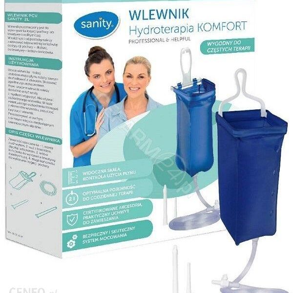 Wlewnik Hydroterpia KOMFORT 2L x 1 szt (Sanity) to produkt, który powstał z myślą o osobach korzystających z rozwiązań medycznych w warunkach domowych. Jego nazwa wskazuje na pojemność 2 litrów, co pozwala dopasować zastosowanie do potrzeb użytkownika. Wlewnik jest częścią oferty marki Sanity, opisanej jako Wyposażenie medyczne.