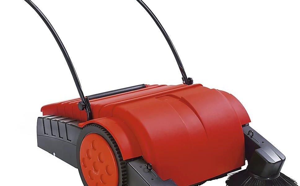 Zamiatarka, z systemem wałków tandem, silnikowym, poj. pojemnika 50 l. Dostawa = zmontowane/w całości. Wersja zamiatarki = system wału tandemowego. Szer. zamiatania = 900 mm. Pojemność zbiornika = 50 l. Szerokość = 760 mm. Wyposażenie techniczne, zamiatarka = bateria, odkurzanie pyłu. Napęd wałka zamiatającego = silnikowy. Pow. czyszczenia netto maks. = 2000 m². Bateria = 12 V / 25 Ah. Wydajność zamiatania (oblicz.) = 3150 m²/h. Wysokość = 416 mm. Kolor = czerwono-czarny. Długość = 1091 mm. Obszar zastosowania = hale magazynowe, miejsca publiczne, obszary produkcyjne, czyszczenie dywanów. Rodzaj produktu = zamiatarki. Zastosowanie: na zewnątrz i wewnątrz pomieszczeń, czyszczenie dywanów, do usuwania większych zanieczyszczeń, większych ilości piasku, drobnych pyłów, do trudno dostępnych powierzchni. Bez pyłu. Wyjątkowo lekkie prowadzenie. Zamiatarka z systemem podwójnych wałków i dwoma bocznymi szczotkami. Lekkie, zwrotne i ciche. Innowacyjne, elastyczne i ergonomiczne. Idealne do wymiatania z narożników. Nadają się szczególnie do zamiatania drobnych i większych oraz suchych zabrudzeń, takich jak papier, liście, wióry metalowe. Szczotki boczne z regulacją wysokości, z bardzo trwałego nylonu. Wyjątkowo dokładna – usuwa od pyłu do puszki po napojach. W jednym cyklu roboczym dwa obracające się naprzeciwko siebie wałki wmiatają śmieci do dużego pojemnika. Dostawa wraz z baterią 25 Ah i ładowarką 5 A (wbudowaną).